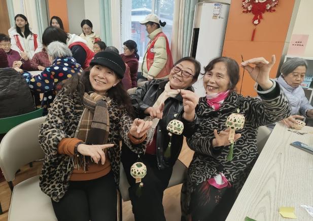 在共同协作下,一件件手工作品陆续完成。老同志们欣然展示成果,并与志愿者合影留念。精心设计的手工互动环节,不仅让老同志们在动手动脑的过程中获得乐趣,也在协作与对话中进一步促进了情感交流,为晚晴苑增添了一份温暖与活力。