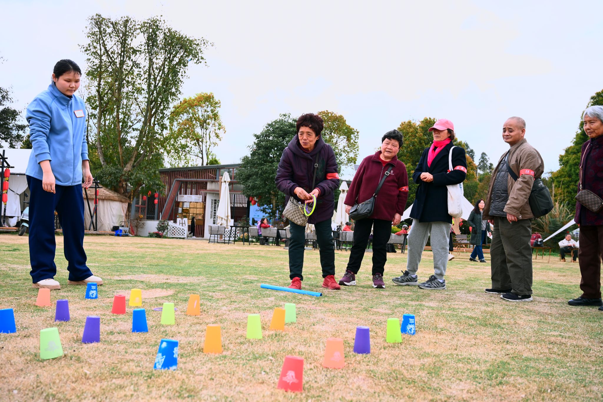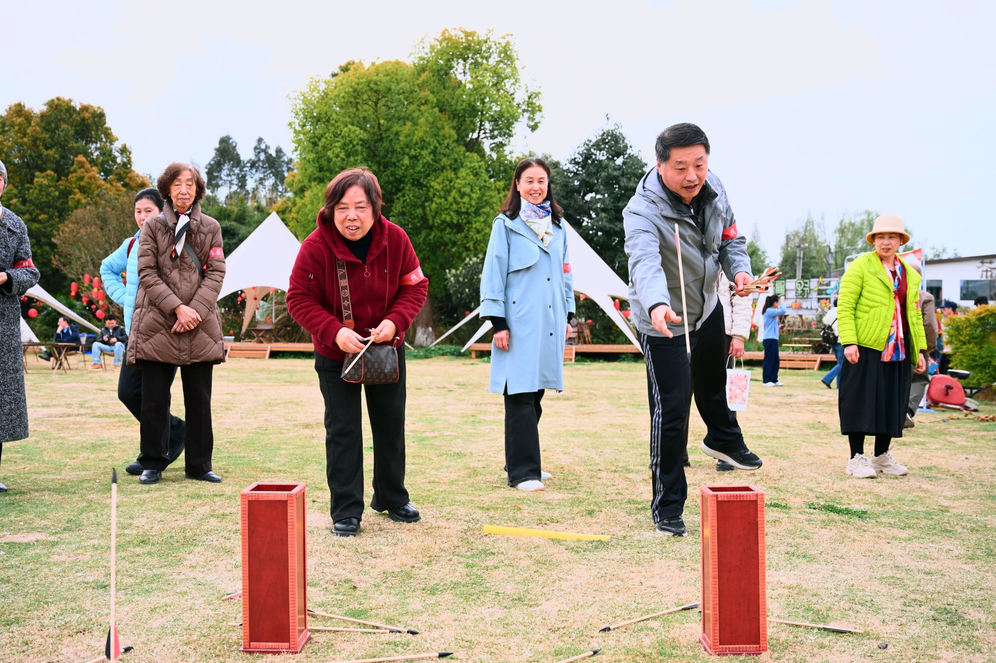 中午简餐温馨而融洽,老同志们抚今追昔,畅谈学校发展新貌与国家繁荣成就,情谊深厚,感慨良多。午后阳光和煦,趣味游戏如火如荼,掷沙包、滚铁环、投壶、套圈等活动让老同志们重拾童趣,欢声笑语此起彼伏,场面热烈温馨。一位老教授动情表示:“春天是希望的象征,今天的活动让我们感受到学校的温暖与关怀,心里特别踏实。”