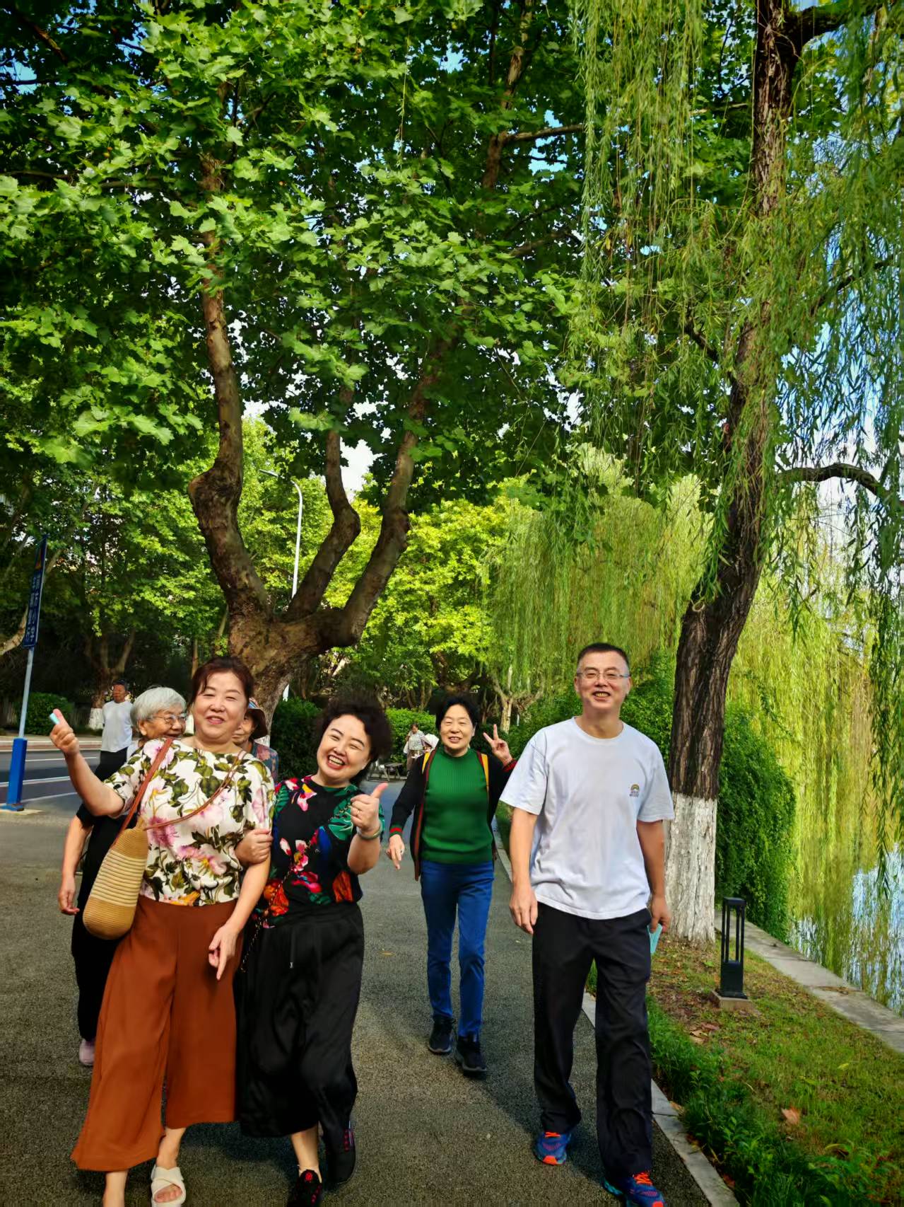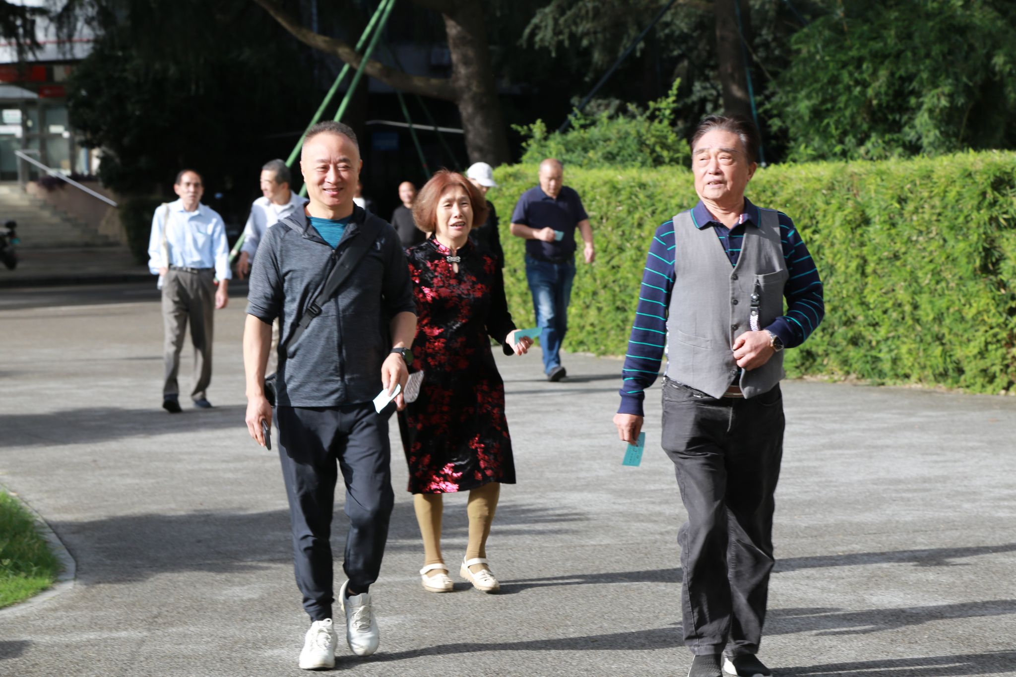 活动现场暖意融融。老同志们手持身份证刷卡领取活动券后,或与久违的同事老友亲切握手、互道家常,或三五成群结伴出发。漫步在熟悉的校园里,他们迈着矫健步伐丈量健康,以灿烂笑容温暖时光:有人驻足欣赏秋日里的绿植与景致,有人在校园标志性建筑前举起手机拍照留念,在谈笑风生间重温往昔在校工作的珍贵记忆,处处洋溢着温馨热闹的氛围。
