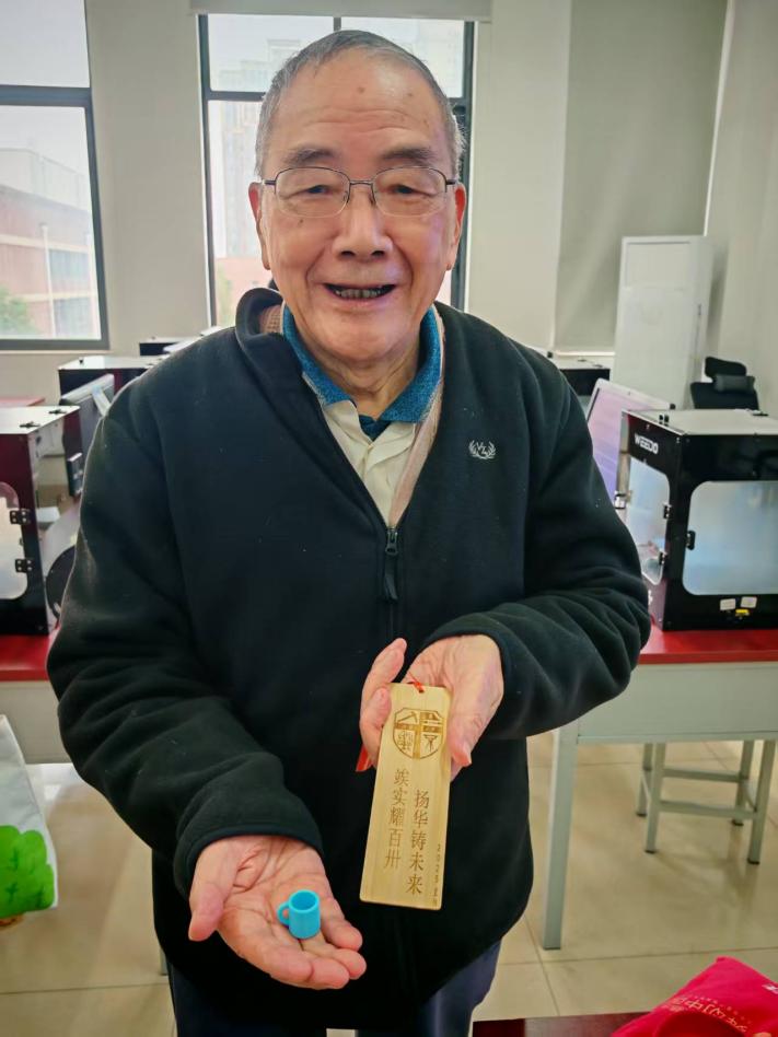 参加学习的退休老师们兴致盎然,认真倾听,积极提问求教,充满对新知识学习的求知欲。杨志军老师和现场教学老师们一对一讲解,让每位参加活动的退休老师都掌握了3D打印设计软件的操作。