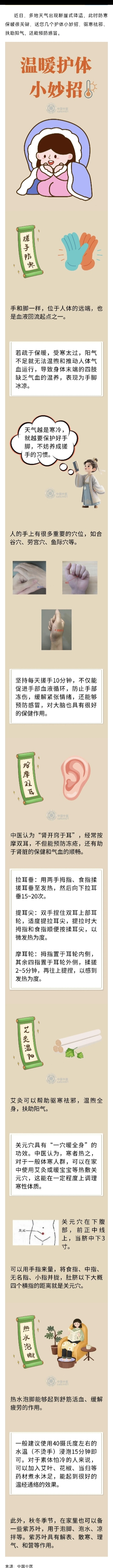 气温骤降,送您几个护体小妙招!驱寒祛邪、扶助阳气、预防感冒