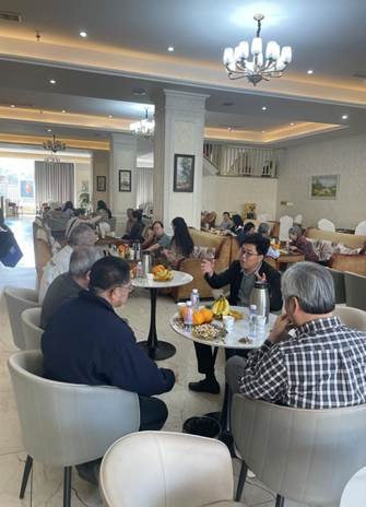 上午,离退休老师们抵达科技园后,首先在园内的休闲区品茗闲叙,畅谈退休生活的点滴,回忆往昔工作的美好时光。学院办公室老师、各系秘书等全程陪同,向离退休老师们通报了学院近期发展情况,并转达了学院领导班子和全体教职工的亲切问候,关心离退休老师们的身体健康和生活近况,现场气氛温馨融洽。