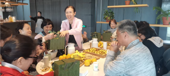 老师们一见面,都激动地拥抱、握手,一路上都激动地倾诉着浓浓的相聚欢愉之情。到了目的地,大家围坐交流,余清秀副院长首先转达了李成坚书记和俞森林院长对老教师们的问候和祝福,并代表学院向老师们赠送了重阳伴手礼,祝老师们幸福安康!