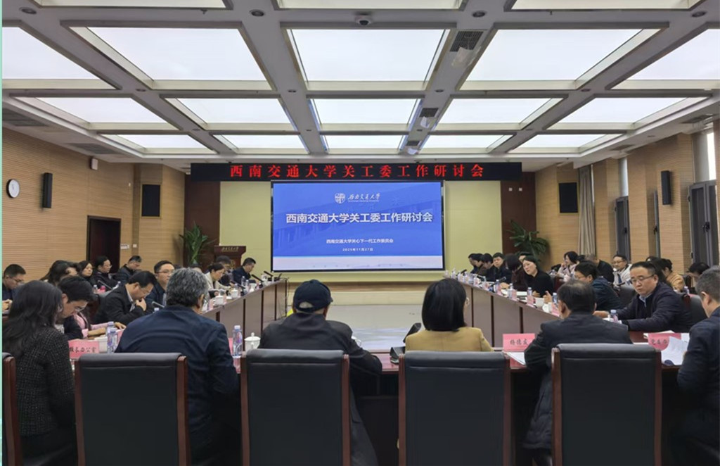2025年11月27日,西南交通大学召开关工委工作研讨会。学校党委副书记、校关工委主任杨爱华,校关工委副主任刘学信,校关工委成员单位及二级关工委负责人等60余人参加会议,会议由校关工委秘书长杨德友主持。